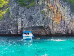 🚤 There were 2 boats that went together. It took about 2 and a half hours on the boat. Since both islands are in Krabi province, the journey took quite a while. We fell asleep and fell asleep again and still didn't arrive. We ate snacks until we were full, but we were still in the middle of the sea. But when we arrived, it was great. The water was very clear. It was a little paradise.