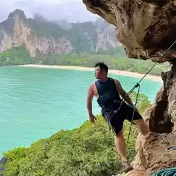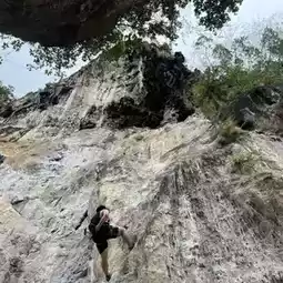 My first time in Krabi, I wanted to challenge myself to try something I thought I could never do, rock climbing. And I was right to choose Railay, a natural rock climbing spot that is well-known to many people. I was actually scared, but the staff here were lovely and told me it wasn't difficult. Let's try. Yes, I did. When I tried it, I felt that it was really worth it with the view in front of me. I asked the staff to take me to a small cave that I had to pass through Phra Nang Beach. I didn't know what it was called, but I walked past the spectacled langurs and into the dark cave. When I reached this small hole, it was like this. The view of Railay was so beautiful that I felt no more tired. On the way back down, I climbed down the cliff and encountered the fresh smell of the sea. Let's try it. #100TravelTips #Railay #RockClimbing #KrabiIsNotJustTheSea #SecretSpotsOfKrabi