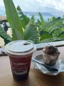 To get there, you have to park your car downstairs and take a songthaew up. There is a coupon for the fare that can be used as a discount of 30 baht per 1 menu.