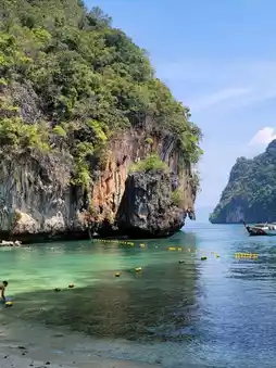 🏝️“Koh Hong Islands (Lao Bi Leh) and Koh Hong Lagoon (Koh Hong Bay)” are shaped like a large hall in the middle of the sea. There is only one entrance and exit by sailing through a cliff. Boats can only pass through during high tide and must be small boats (long-tail boats).