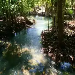 During low tide, Tha Pom Khlong will be replaced by fresh water from Khao Chong Phra Kaew. You will see the crystal clear emerald stream, which is very inviting to jump in and play in.