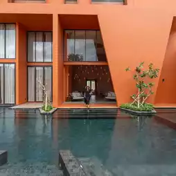 Decorated in orange tones throughout the building Comes with beautiful patterns