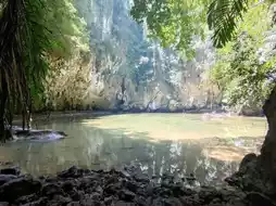 Highlights: The Railay Lagoon, a saltwater lagoon or an enclosed sea located in Railay Beach, Krabi, is a sea water basin in the mountains. To put it simply, it is like a volcanic crater with a hole in the middle. Of course, getting here is not easy. You have to climb to reach the center hole. It is sea water that is not in the sea, making it very difficult to access.