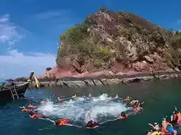 When you get to the sea here, you'll feel like you're in a crystal clear blue pool. The atmosphere is quiet, with only the sound of soft waves. You can see many colorful fish swimming around, whether it's a small clownfish or a large colorful fish swimming past you. I must say that it's an unforgettable experience. In addition, the guides who take you scuba diving are very friendly and always show us interesting underwater creatures. Most of them are professionals and know beautiful photo spots. If you're an adventurer, I must say that you have to try scuba diving in Krabi at least once. You'll get to experience nature for sure.