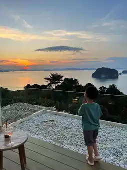 A top-notch cafe in Krabi, built on the edge of a cliff, with a stunningly beautiful view. Every corner has a beautiful view of the sea. The atmosphere is very good and it is one of the most beautiful sunset viewing points. Private cars are not allowed here. You must park at the parking lot and take the cafe's shared taxi up.