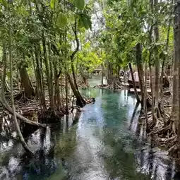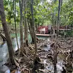 Midweek break, not sure where to go, so I invited my aunt for a walk at Tha Pom. Located in Ban Nong Chik, Moo 2, Khao Khram Subdistrict, Mueang Krabi District, it's a place to enjoy nature walks and you can also swim in designated areas with signs indicating service points.