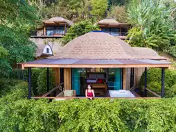 Aonang Fiore Resort offers cottage-style accommodations on a hillside, providing panoramic views of Krabi city. It gives the feeling of sleeping amidst a tranquil forest. The highlight is the jacuzzi on the balcony, where you can soak while enjoying the view. It's truly wonderful.