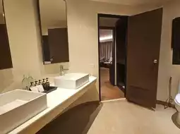 I would like to recommend a good place to stay in Krabi that we really like: Beyond Krabi Resort, a beachfront resort that is quiet and relaxing. In the morning, we stayed here for the second time. This time, we stayed in a room with a garden view. The room was very spacious with many sitting areas. The bathroom was also spacious with two sinks, a toilet and shower area.