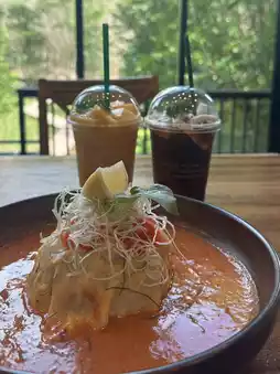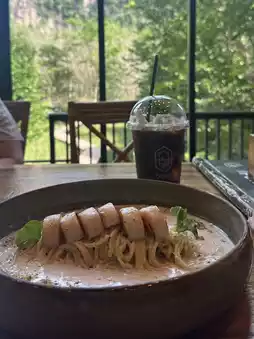 “Into the Forest” offers a dining experience like no other, nestled among towering karst formations that make you feel like you’ve stepped into a hidden paradise. The ambiance is peaceful and magical, with the lush greenery surrounding you. Their tom yum crab fried rice is a must-try — it’s packed with flavor, balancing the spicy, sour, and savory notes that Thai cuisine is known for, all while delivering fresh, succulent crab.