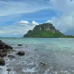 9:00 AM Take a long-tailed boat, Phetchinna Namchok, to Phra Nang Beach, a beautiful beach with a view of the stone mountains, cliffs and caves, surrounded by tourists and those who love rock climbing🐵⛴️