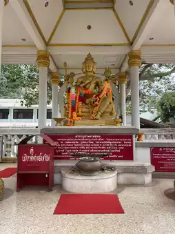 Within the peaceful grounds of the Tiger Cave Temple, a magnificent Golden Buddha is seated in deep meditation beneath the protective embrace of a sacred tree. Its radiant golden surface reflects the light, creating an aura of serenity and spiritual wisdom. The statue invites all visitors to pause, reflect, and connect with the teachings of the Buddha. 🌳✨🙏