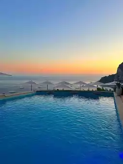 Enjoy the white sand beach, clear water, and beautiful sunset.