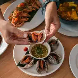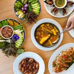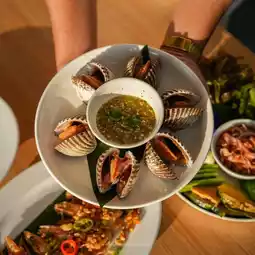 Select quality ingredients, served to you 😁 The boiled cockles menu is a must-order. They are natural, very large cockles. There are many other southern dishes that are delicious, such as sour curry with sea bass and coconut shoots, traditional three-flavor pork, sweet fried squid eggs, and fresh shrimp chili paste. Very delicious.