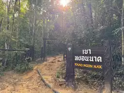 Khao Ngon Nak is a hiking or trail running trail near Krabi and Ao Nang. You can park your car at the park office and walk up to the viewpoint, which is about 4 km from the starting point to the top. Along the way, you will find the very beautiful nature of the southern forest. The first 2 km are quite steep, but there are stairs to support you, making it easier to climb. When you reach the top, you will see a beautiful view of Ao Nang and Koh Hong, which are far away.