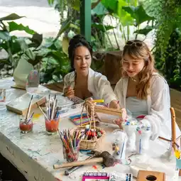 There are many activities here, such as cycling, collecting duck eggs, kayaking, tubing, swimming in the communal pool, and there is a Banana Land cafe for you to relax in 💛