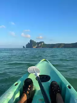 * Kayaking: On days when the rain stops and the waves are calm, you can rent a kayak from the resort to paddle and see the beauty of Railay Bay! So cool!