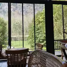 #GetDiscountsWithoutLuck Today, I went to try Into The Forest Café in Krabi. I must say that this is a café with a great atmosphere. 🌳 The café is located in the middle of a rubber plantation and mountains. It's like you're really resting in nature. There's a long wooden bridge for you to walk on and take beautiful pictures. 📸 Sitting and sipping coffee feels so relaxing. I love the pork ribs with rich sauce and the chocolate cake that's just the right amount of sweet. It's so delicious. 🍖🍰