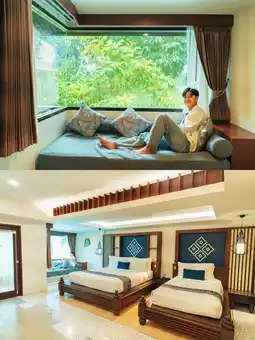 We give it to the accommodation with a lot of green space. Look at any corner and feel refreshed. We think the location here is good. It is located in front of Ao Nang Beach. The atmosphere inside the resort is very quiet and shady. The staff take good care of you. There are many facilities as well.