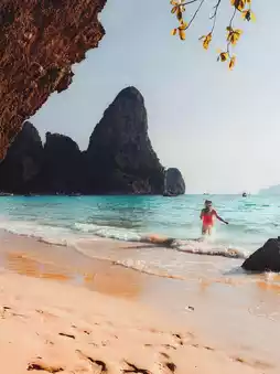 The beach itself is decent for sunset strolls, but the real fun starts when you hop on a longtail boat. Railay Beach? Absolute stunner. Phra Nang Cave? Wild and beautiful. You can literally bounce between jaw-dropping beaches and epic cliffs like it’s no big deal.