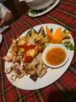 * Hot plate seafood: A trendy menu that the restaurant makes deliciously. Fresh shrimp and fish