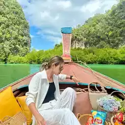 We arrived by longtail boat and honestly, the vibes were immaculate from the start. There’s a calm lagoon you can kayak through (highly recommend), and the main beach is perfect for just floating around or doing absolutely nothing. Total zen.