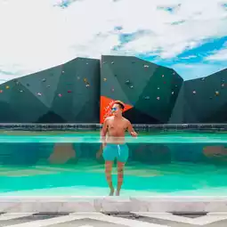 Or there is a glass swimming pool where we can swim and take cool photos