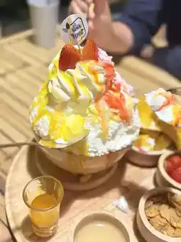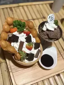 • Hong Kong waffles are loaded with cream, ice cream, fruit, and overflowing toppings. Enjoy all you can eat.