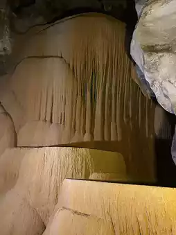 The cave is made up of large limestone formations, with beautifully shaped stalactites and stalagmites that are a delight to behold. At certain angles, light streams through the cave entrance, creating a mysterious yet stunning photograph. 🌿✨ Especially during high tide, the sea water rises close to the cave, creating a stunning contrast against the surrounding cliffs.