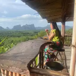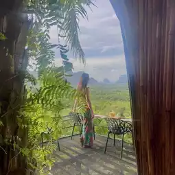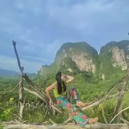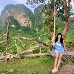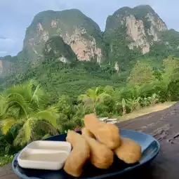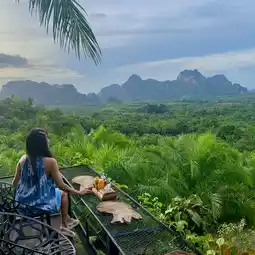 Kuan Nom Sao means 2 mountains next to each other in the shape of a milk. This is a beautiful viewpoint, a secret location. Suitable for visiting in the morning or evening. Sometimes there is a sea of fog. If it rains and the air is humid, there will be fog. The day I went, the air was not humid enough, so I didn't see the fog. The food here is delicious. The owner of the garden used to open a restaurant in Ao Nang before. When the COVID-19 situation hit, the shop was closed. So, he took his garden, which has a beautiful mountain view, and renovated it into a new natural tourist attraction.
