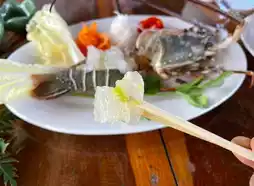 Kanab Nam View Seafood is a must-visit restaurant that impresses with its incredibly fresh seafood, excellent atmosphere, and attentive service. The staff truly cares about their customers. You can also book a tour to explore the mangrove forest tunnel. The highlight here is the lobster sashimi—it's incredibly fresh, sweet, and has a tender, bouncy texture that melts in your mouth. Other dishes are also delicious. Rest assured, you won't be disappointed when you visit this place.