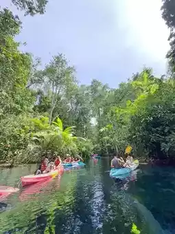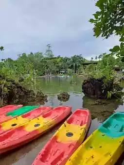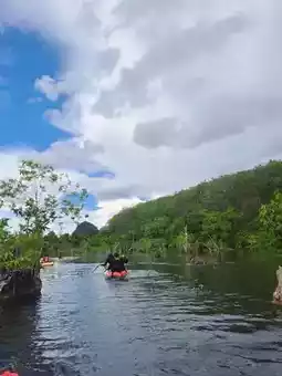 พายคายัค 🚣♀️ สนุกมากเราไปกับทัวร์มีคนนำทางให้ ได้ชมวิวธรรมชาติรอบๆ สองฝั่งคลอง มีภูเขาหินปูนกับป่าเขียวๆ ล้อมรอบ สวยเหมือนอยู่ในหนัง