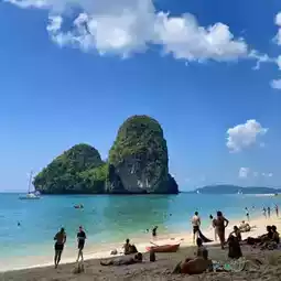 💡 What I love most about Railay is that everything remains so natural, not overly developed. You'll see crystal-clear waters, tall cliffs, and white sand beaches, giving you an untouched vibe that's hard to find in popular tourist destinations anymore.