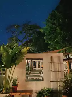 This cafe, restaurant, and hotel offers rooms starting at 1,500 baht.