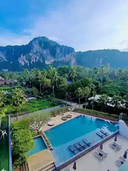 Centara Life Phu Pano Resort Krabi is a charming resort with its surrounding limestone mountains. The tranquil atmosphere makes it perfect for a relaxing getaway. 🌄 The rooms are decorated in a modern, simple style, yet fully functional. The beds are soft and comfortable, and the amenities are complete. 🛋️ The resort's central swimming pool overlooks the towering mountains, allowing you to swim and enjoy the view. It feels like a luxurious resort, but at an affordable price. ✨ It's also located just a few minutes from Ao Nang Beach, making it convenient for strolling, shopping, and dining. 🚤
