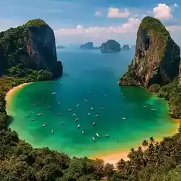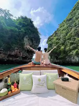 This trip begins at Railay Beach, basking in the crystal-clear waters, powdery sand, and towering limestone cliffs that embrace nature like an embrace. Continue to Phra Nang Cave, a sacred site filled with the power of faith and serenity.