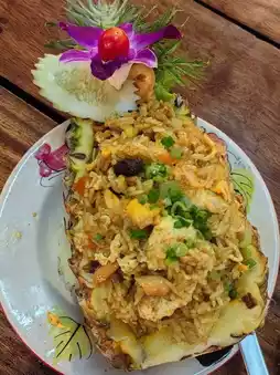 Romantic dining with sweeping ocean views — perfect for sunset dinners. Try their seafood platter or Thai green curry.