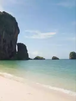 ๐: Don't miss this beach if you're in Railay. It's one of the most beautiful beaches, with limestone cliffs standing out in the sea. The beach is beautiful, with white sand and crystal clear water. We recommend renting a kayak to paddle around the small islands nearby. You can also relax and sunbathe or swim in the sea.