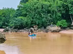 🌿From there, we wandered down the Mangrove Forest Walkway, a serene wooden path winding through dense mangroves buzzing with life. My son loved spotting mudskippers and crabs along the way! The viewpoint offered a breathtaking scene — misty cliffs rising above the lagoon, with a single traditional longtail boat drifting below.