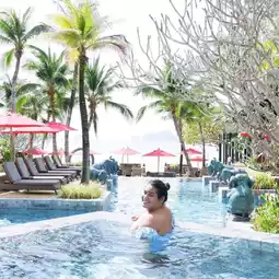 Amari Vogue is a 5-star hotel located near Tab Kaek Beach. In front of the hotel is the way up to the famous Hong Nak Mountain. The back faces the beautiful ocean. At the northern end of Tab Kaek Beach, you can see the Hong Islands. In the evening, you can watch the beautiful sunset.