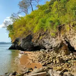 Ao Nang Beach is full of islands with beautiful views around it, which are different from other beaches because one side of the bay is a mountain. There is a cave with stalactites and stalagmites called Phra Nang Cave. Inside the cave, there are stalactites and stalagmites stacked in layers and there are many beautiful beaches, including Railay Beach, Phra Nang Cave Beach, and Nam Mao Beach. However, you cannot drive to these three beaches because there are mountains blocking them, so you have to rent a boat from Ao Nang.