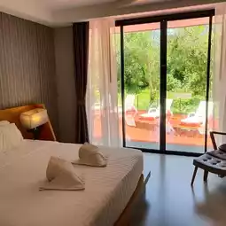 We recommend booking a Pool Access room, where you can walk directly from your bed into the pool. Behind the pool is a pine forest, offering a refreshing and natural atmosphere.