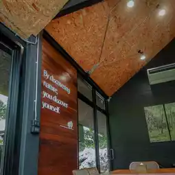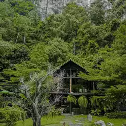 Nature lovers should not miss this cafe in the middle of a valley 🌳Into the forest🌳 It gives off a very natural feel. The front of the cafe is a rubber plantation, while the back is a mountain range, which is a unique feature of Krabi Province. ⛰️