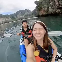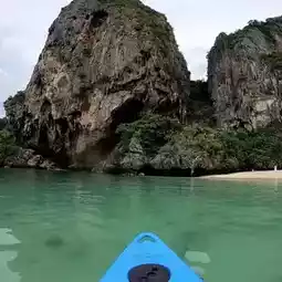 🚤 Gammy took a boat from Ao Nam Mao Pier for 50 baht per person to Railay Beach. Here you can rent a kayak for about 200-250 baht per hour. The distance is paddling around the bay.