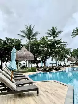 Come to Krabi again. This time, let's stay in Ao Nang. Normally, we go to Railay. Today, we are staying at Centara Ao Nang Beach Resort & Spa. The receptionist is very good. But we came during the monsoon season, the sky looked cloudy. There are 2 swimming pools, big and magnificent. The bedroom is good, with complete amenities. The room price is not expensive. The atmosphere is good. We booked a sea view room. Even though the view is a bit cloudy because it's raining 😭 But it's beautiful in another way. ✨🫶🏻🫶🏻🫶🏻