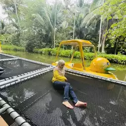 "A cafe in the middle of the water with yellow ducks" is another cafe that anyone who visits Ao Nang, Krabi must stop by to check in, take beautiful photos, eat food and drinks, and meet friends by the water surrounded by trees and nature. There are both air-conditioned and ozone-infused seating areas by the water. 🍃