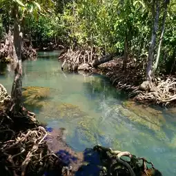 Tha Pom Khlong Song Nam is located in Khao Kham Subdistrict, Mueang District, Krabi Province. It is under the care of Khao Kham Subdistrict Administrative Organization. It is considered an ecological learning center.
