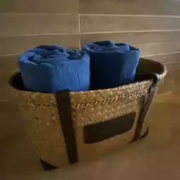 The room is a building. There are beach front rooms 🌊 with a beautiful view and the sea. You can walk down to the sea. There are footpaths, baskets and towels to borrow to play.
