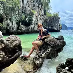 Koh Hong, Krabi Province is another place that I recommend going to. The sea water is clear and beautiful. It is a small island where you can stop and have lunch. The recommended way to get there is by long-tailed boat so you can take beautiful pictures. It is not too far from the shore. The sandy beach is clean and white. You can take pictures from many angles. Every angle is beautiful. To make it beautiful, you have to go up and take pictures on the long-tailed boat. The pictures will come out very beautiful. I highly recommend it. #thailand #krabithailand #go to the amusement park #organize a sea trip
