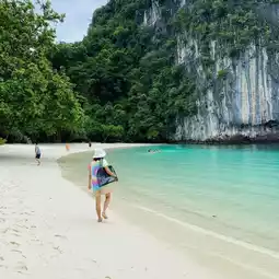 "Koh Hong" is locally called "Koh Lao Bi Leh" and is located in Tharbog Khorani National Park, Krabi Province. It is a very beautiful island. The first time I went there was 7 years ago. At that time, I thought it was beautiful, but the next time I went there, it was even more beautiful because it was quiet and there were few tourists. The sand here is white and fine, and the sea water is very clear. In addition, there is Hong Lagoon, which is a high cliff that is a highlight that everyone who comes here must take a picture of. 📸 It is an island that is so beautiful that I have to tell everyone. I would like to recommend my friends to pack their bags and come to visit Koh Hong. Everyone will be impressed by the beauty of nature from here, just like us. 💕