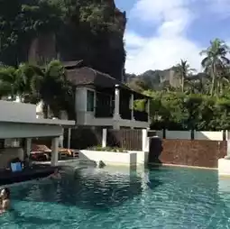 The hotel has a restaurant, a fitness center, and a dining and drinking area in front with a view of Railay Bay to the east. The view is very beautiful.